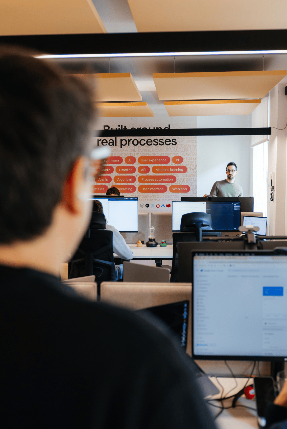 Costruiamo soluzioni AI concrete: modelli di Machine Learning per analizzare dati complessi e prevedere trend, algoritmi custom per esigenze specifiche e assistenti AI integrati nei tuoi software.